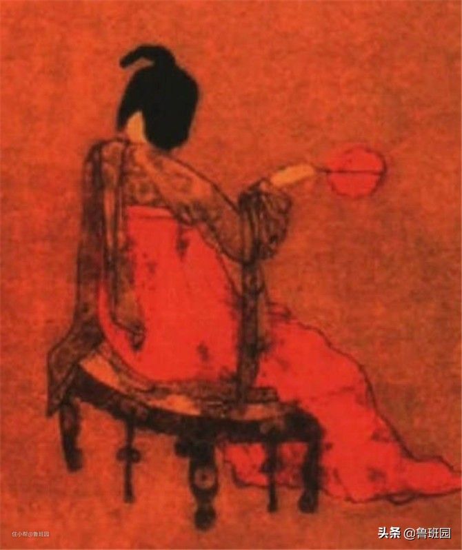 下图是唐周昉所绘《挥扇仕女图》中的月牙凳形象,其采用腰圆形凳面,如意云纹式腿足,两腿之间的边牙上钉有金属环,在环上饰以彩穗。