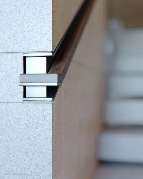 我们一般处理的方式,是把阳角变成阴角,或者把阳角变成平面。比如上面说的包管阳角,就可以有两种解决方案,有一种处理工艺是磨边,一边的瓷砖打磨成圆弧,再与另一边的瓷砖以90度接合到一起,还有一种是用压条,用铝合金/不锈钢压条,把原本的阳角对碰,变成瓷砖-金属-瓷砖的衔接来实现过渡。
