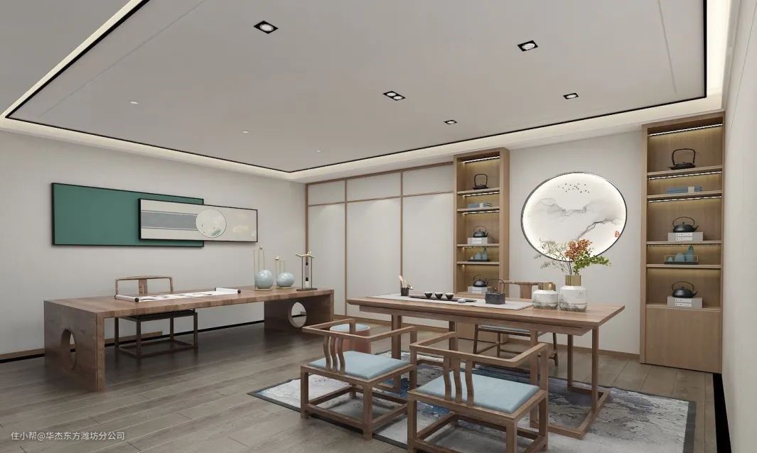 5.主要以原木家具为主,练习书法同时以茶会友,演绎出禅意东方美和典雅韵味,给人以“静”的享受。