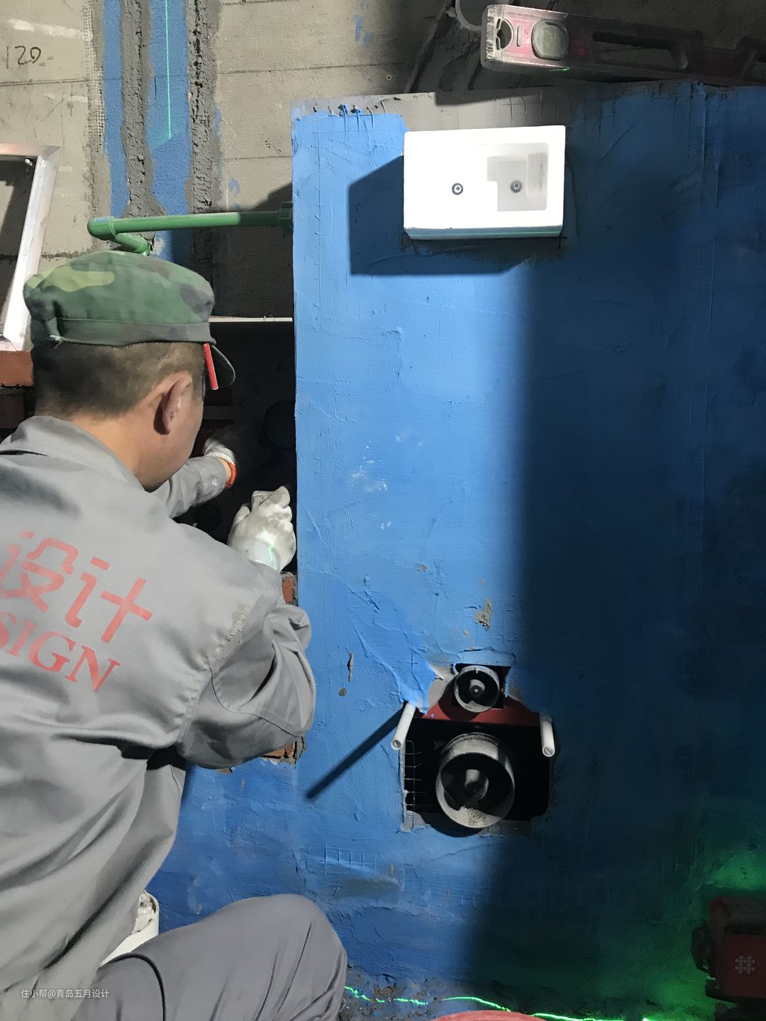 ▲我们的瓦工师傅正在预埋相关管路与配件。