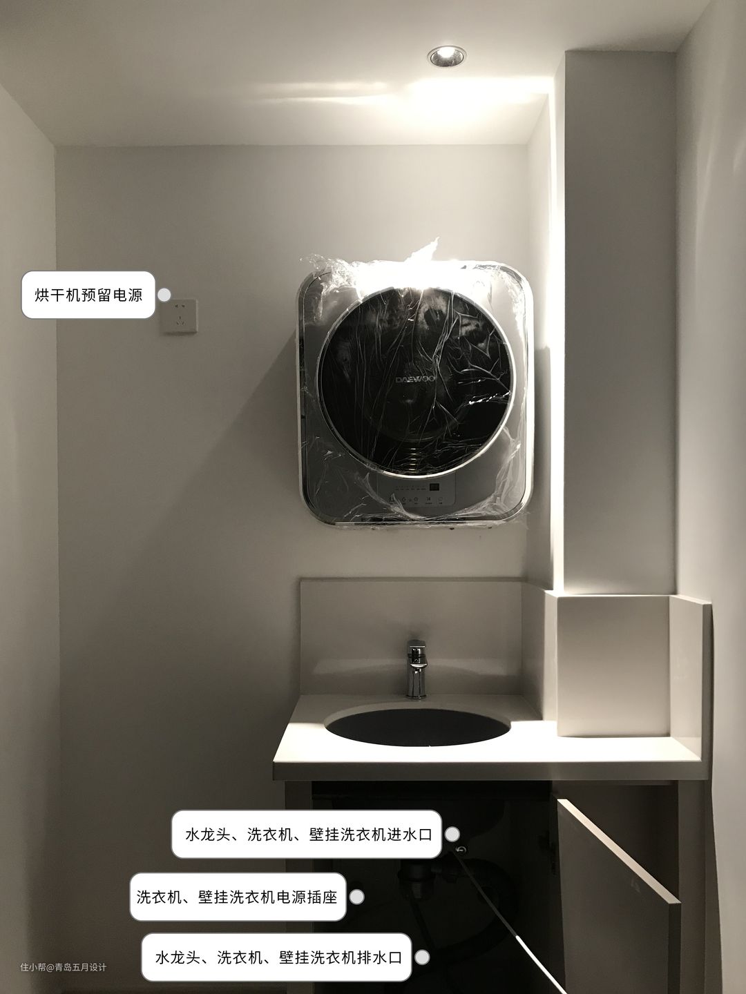 ▲壁挂洗衣机已正常安装,左侧规划的洗衣、烘干机也在路上啦。