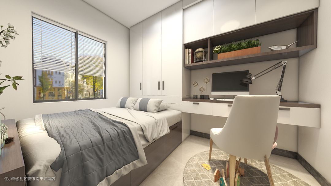 榻榻米房,是书房与客房的结合,在这个不足10㎡的空间中,满足屋主的基本生活和办公需求。