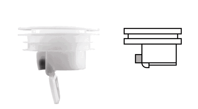 直上直下的T形地漏芯和铅坠式一样,也有一个挡水板,有水时挡水板弹开,没水时就自动关上,不同的是它是由弹簧或磁铁控制。