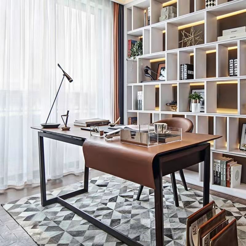 书房空间延用了黑白的主色调,搭配现代极简造型的书桌椅,让一切尽显清雅。巨幅落地窗,搭配纯白色纱窗,一眼望去,景色尽收眼底,美丽而低调。