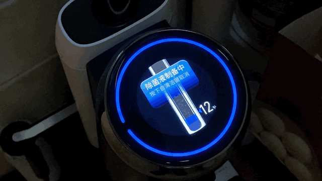 可以看到净水箱的除菌液制备过程,从净水箱底部冒出细腻的小气泡。