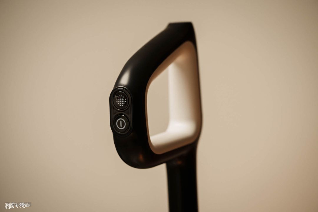 开关和模式键在前部,这样拖地的时候机器拉杆斜过来,大拇指刚好可以摁到这两颗键。