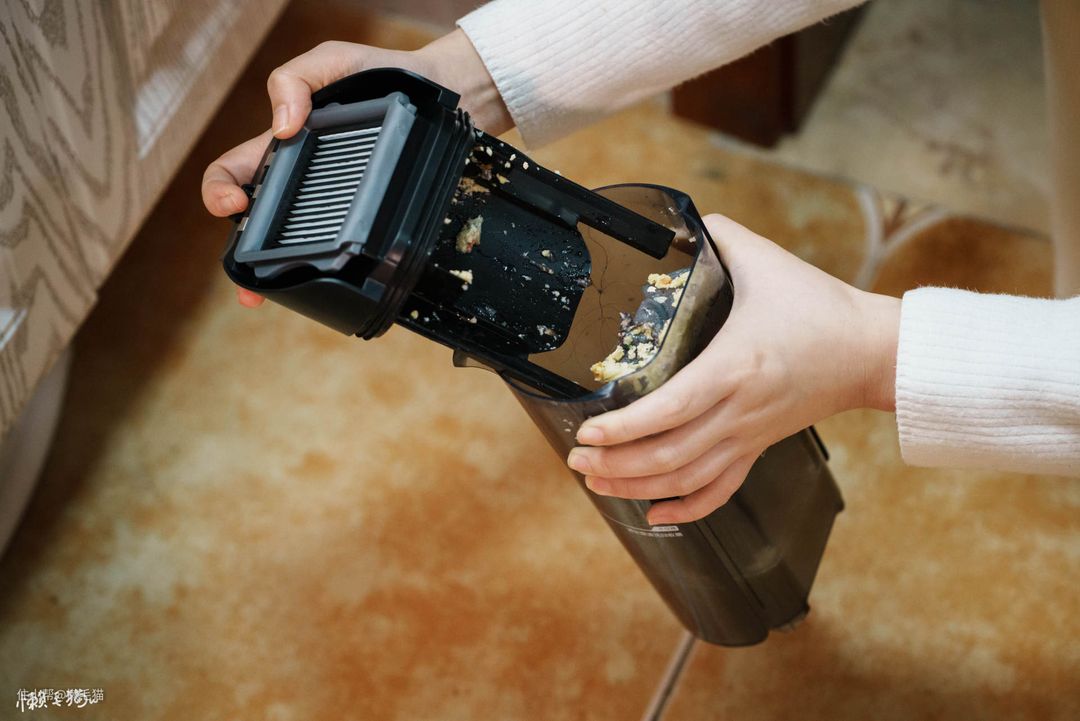 当然,如果想手动进行彻底清洁(其实完全没必要啦),拆卸滚刷也非常方便,从固定滚刷的一侧吧滚刷拿下来就可以。