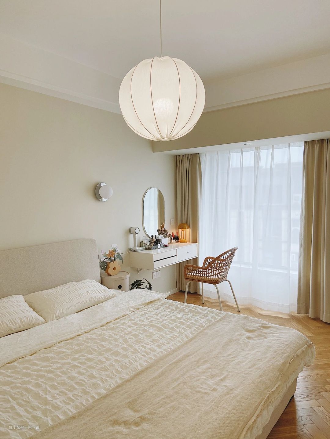 在卧室中设计吊灯,是一种常见的设计方法。颇具设计感的吊灯,在其简单的外表下隐藏着丰富的内涵,能在第一时间成为吸睛焦点。