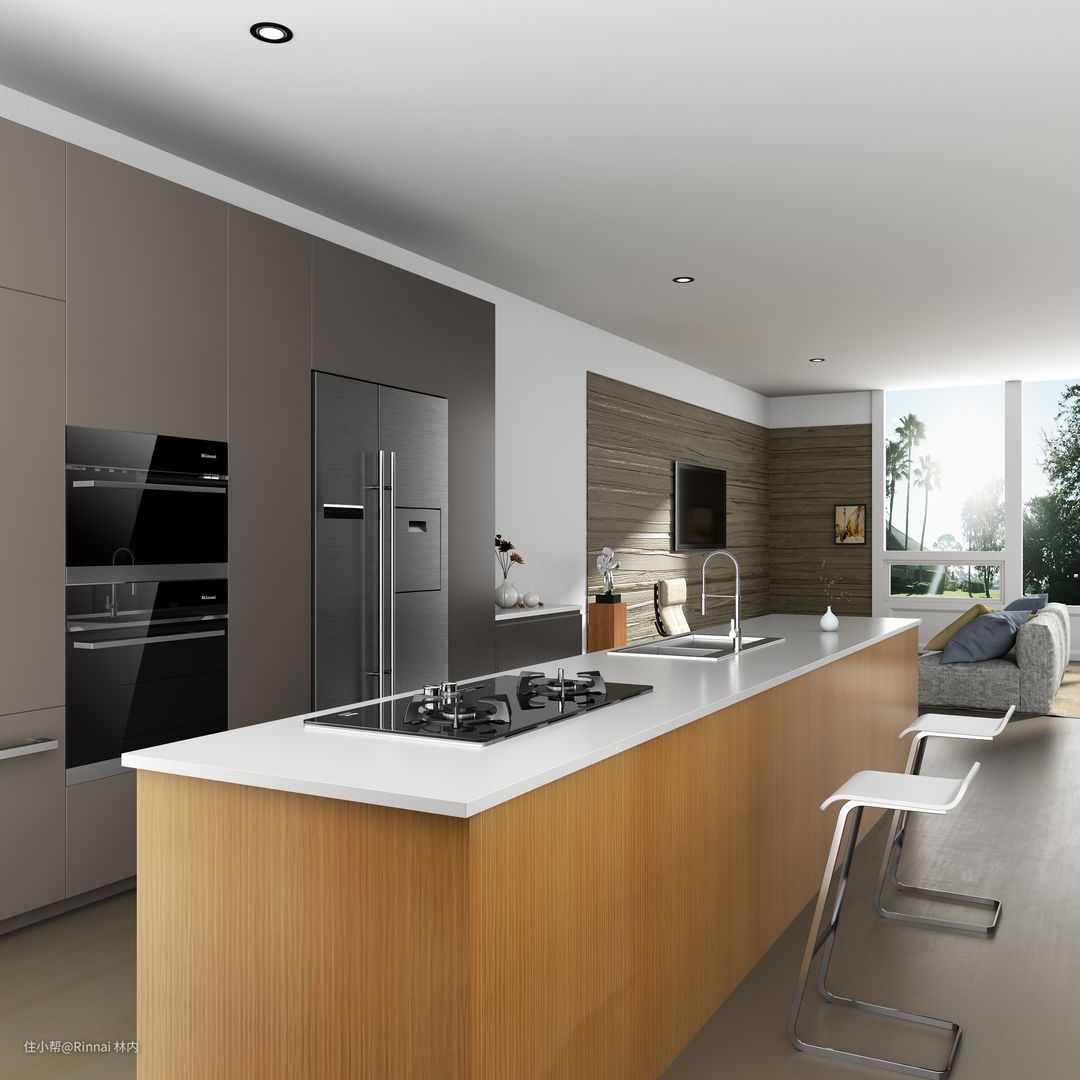 嵌入式燃气灶,固定嵌入在橱柜台面的凹槽内,产品颜值高也方便清洁。