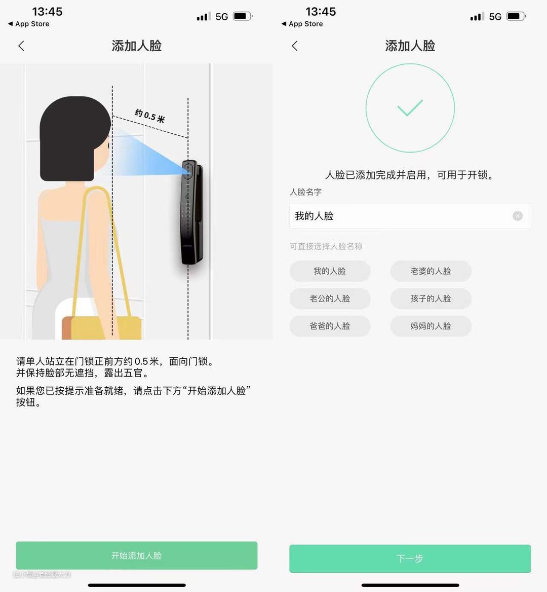 只要在门口稍微站立1秒钟,就能自动解锁,你要做的就是伸手拉开门进屋。我家从电梯出来要迎着门走,有时候刚刚走到门口还没等伸出手,已经识别到人脸解锁了,解锁速度还是蛮快,而且精度很高,基本没有失败的时候。