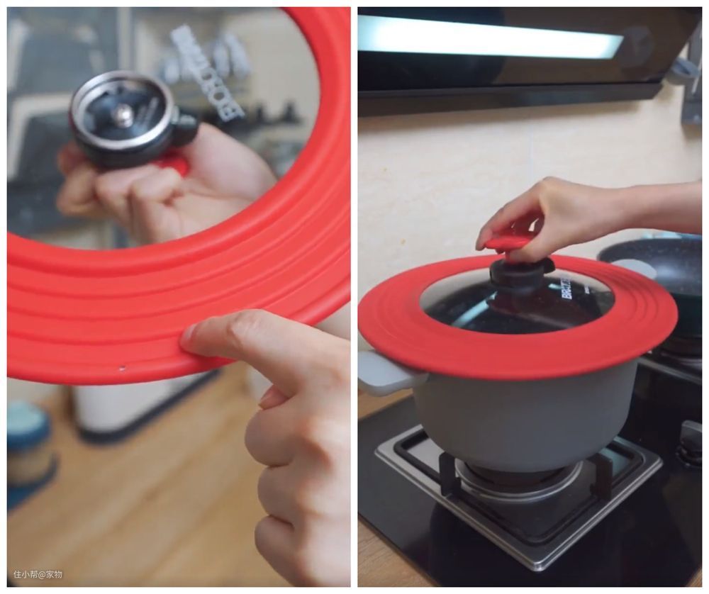 与此同时,它的上面还有这样一圈一圈的环纹,适合不同大小的锅具口径,实用性还是比较强的。