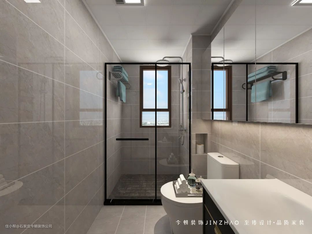 干湿分离,与主卫同样配色的瓷砖,搭配黑色极简边框,大气个性。