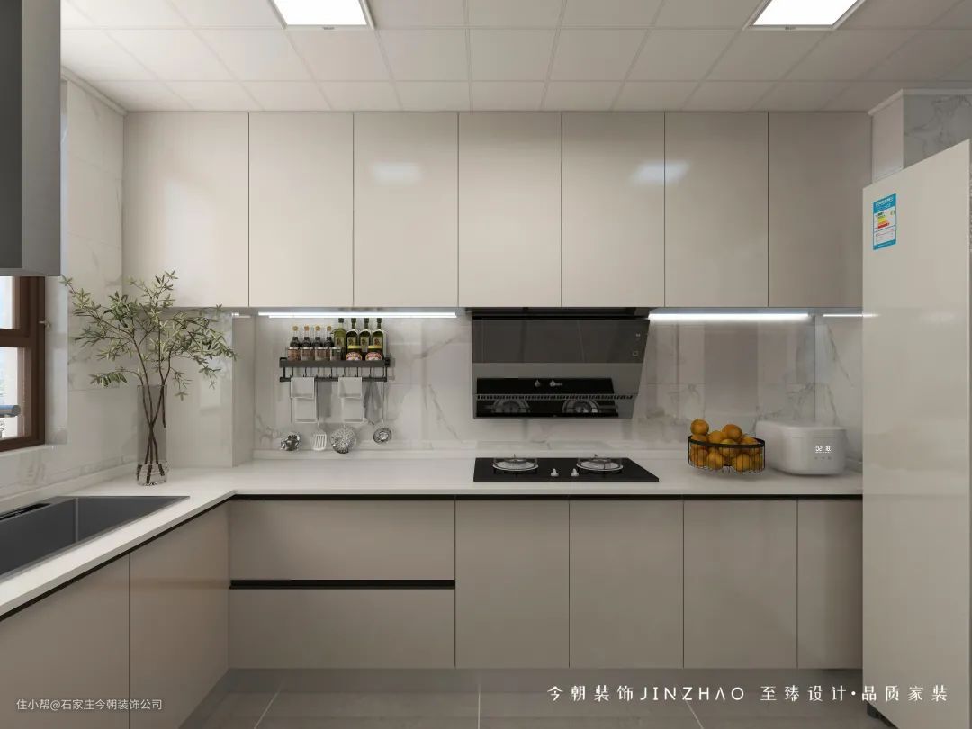 浅棕色橱柜搭配浅色瓷砖,空间整体温润大气。