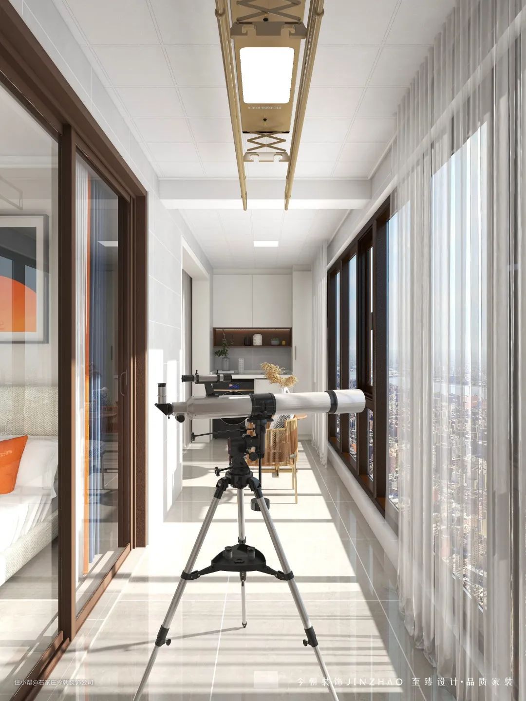 儿童房外的阳台上摆放了一个望远镜,满足儿童天性好奇的童真。