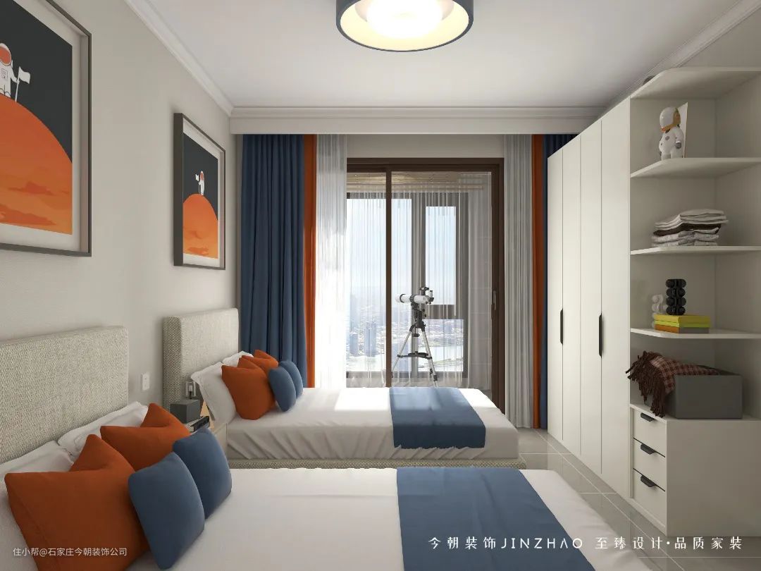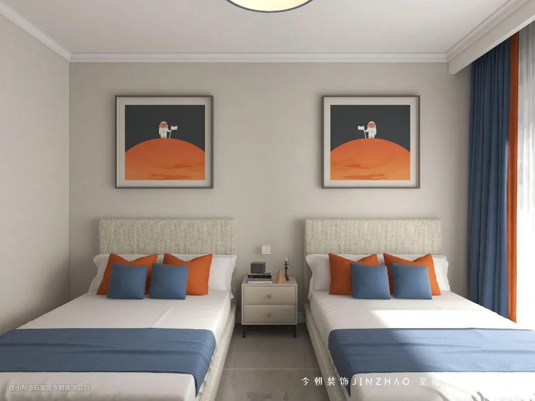 业主家里有两个儿子,没有做传统的儿童房,而是用两个小床分开,以后孩子长大后更方便变更布局。