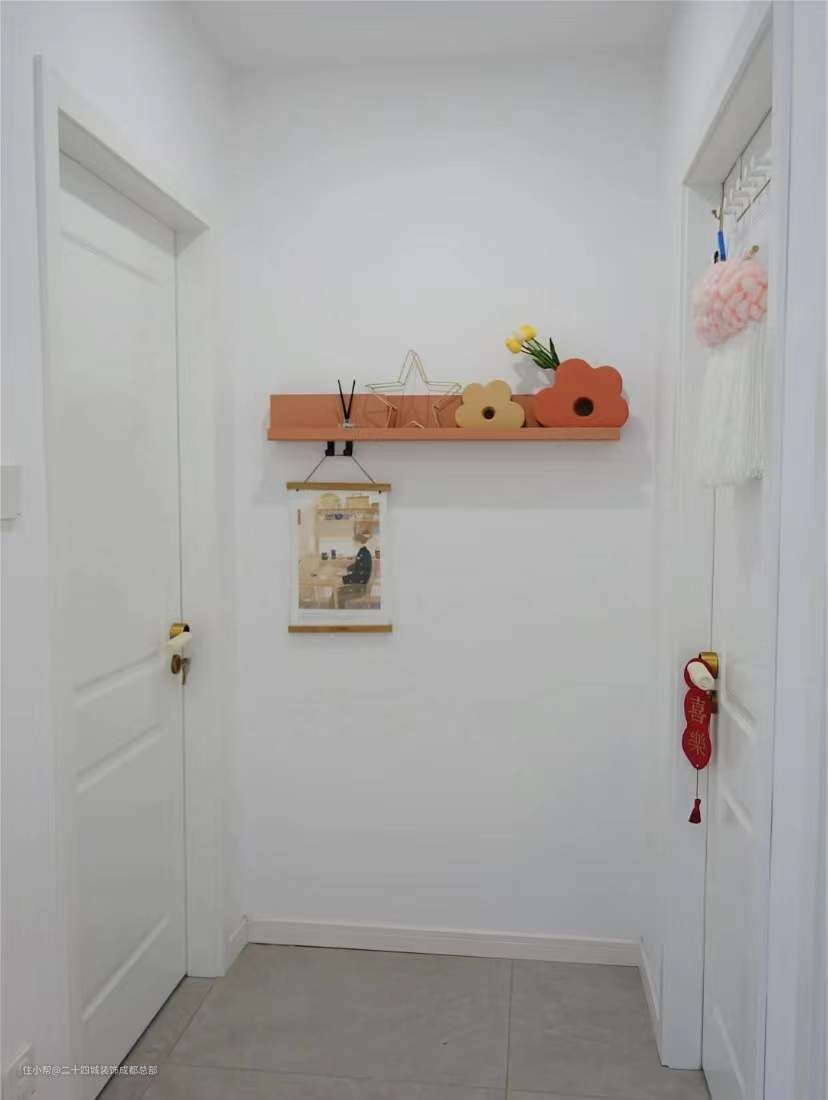 如果墙面不可拆除,墙面也可以加上小隔板,收纳小物件,精美的小物件装饰性也很强。