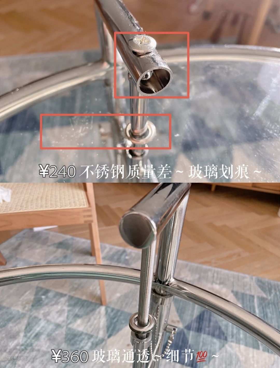 这是两个图片完全一样的中古茶几,分别来自pdd和橙色一个240一个360,其实单看差别不大,但摆在一起,大眼以扫视,基本就能看出其中差别。