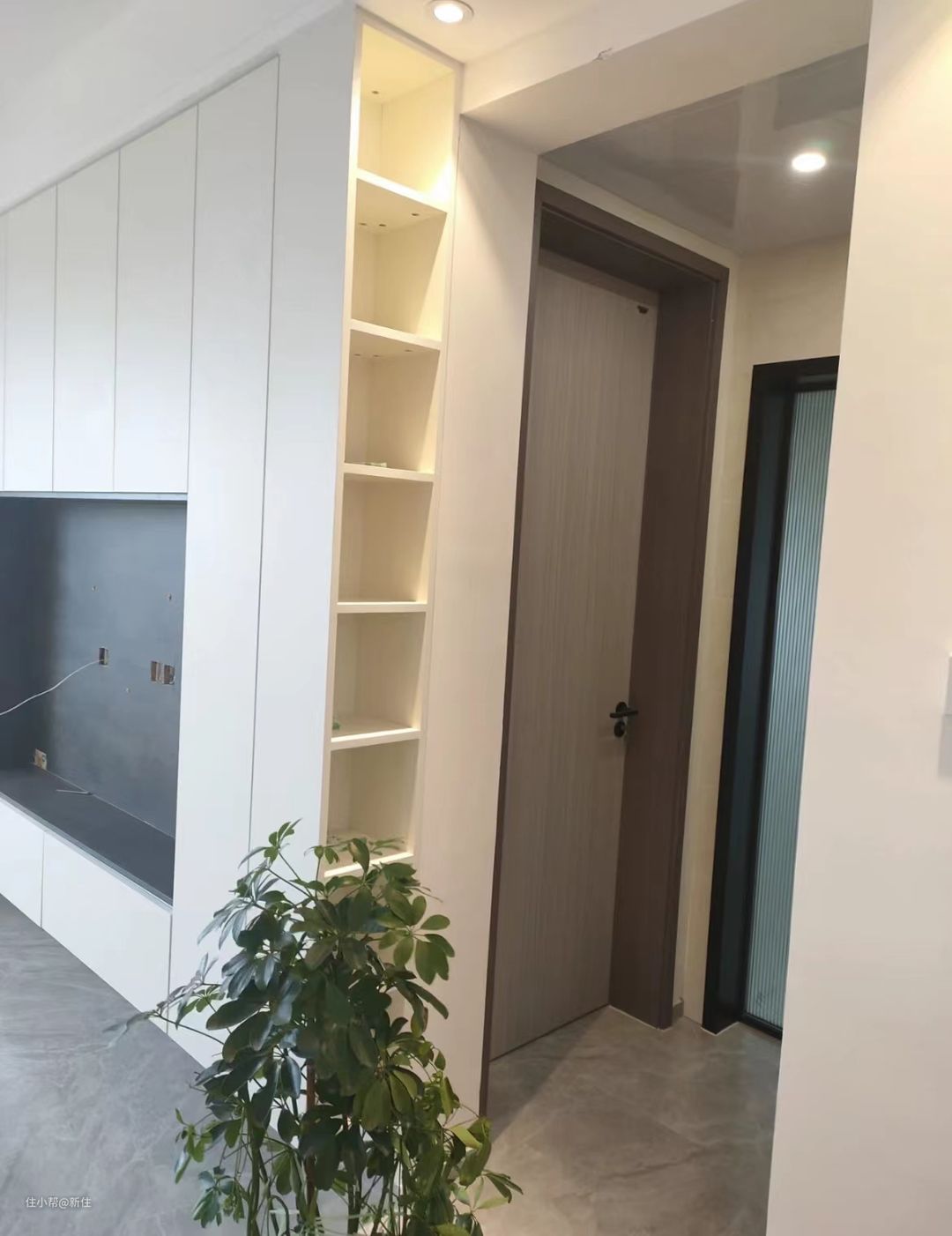 如果这里想放吸尘器、扫地机等智能电器,记得提前预留电源,这样后期充电也方便。