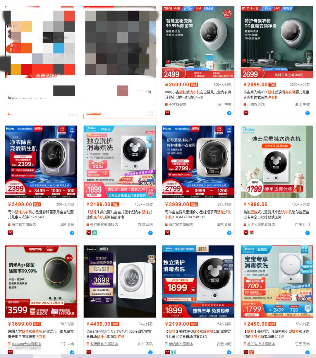 搜索“壁挂洗衣机”,无非就是方的、圆的两大类了。