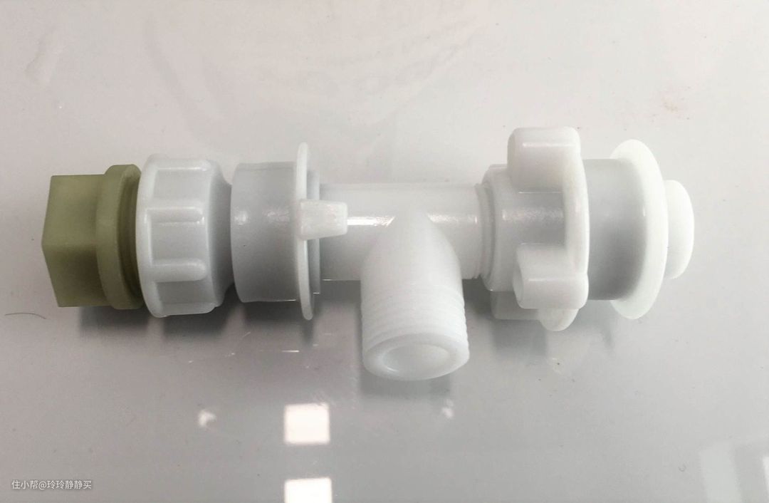 另外,机器自带的进水三通是为了兼顾不同类型和口径洗衣机龙头或角阀的。由多个模块组合在一起,有点长,但不是必须都用的。我家最后就是仅用了一个短接口,其他的都没用,看起来会更干净利落些。
