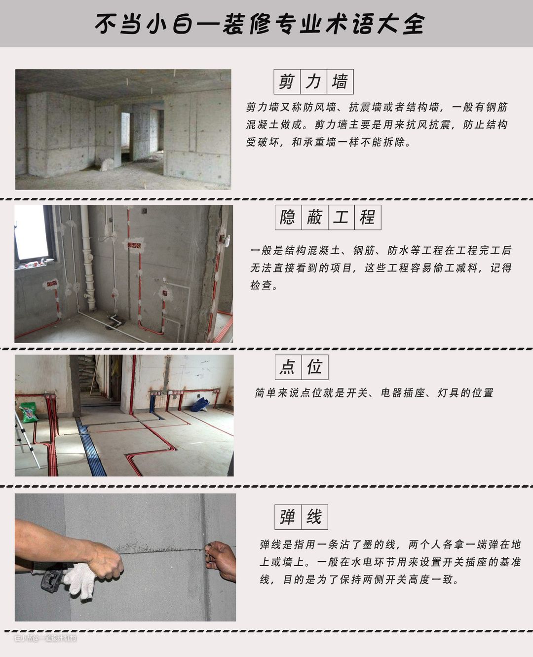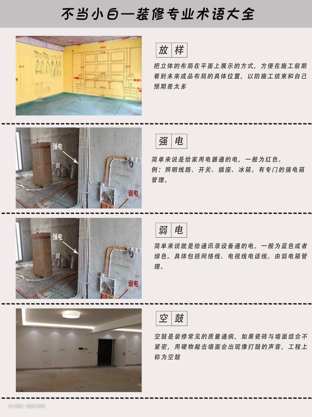 家里装修的时候,遇到工长说了一大堆的装修术语,然后这也不懂,那也不懂的望着工长?别装哥告诉大家,这样肯定是不行的,如果遇到坏人,你只有等着被坑的份。