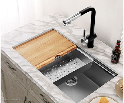- 缺点:台中盆缺点是价格高了,要求极高的工艺水平,还有在施工过程中容易造成台面破损,而且水槽与平台缝隙仍是死角,易残留饭渣污渍等,滋生细菌,且清洁不容易。