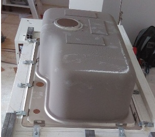 3、专用五金件配合专用AB胶将盆固定在台面下,如果有垃圾处理器建议增加固定点的数量