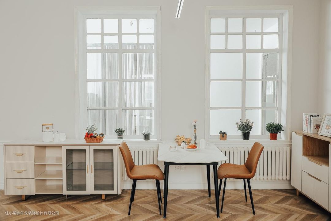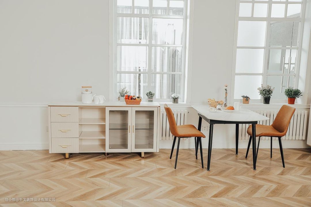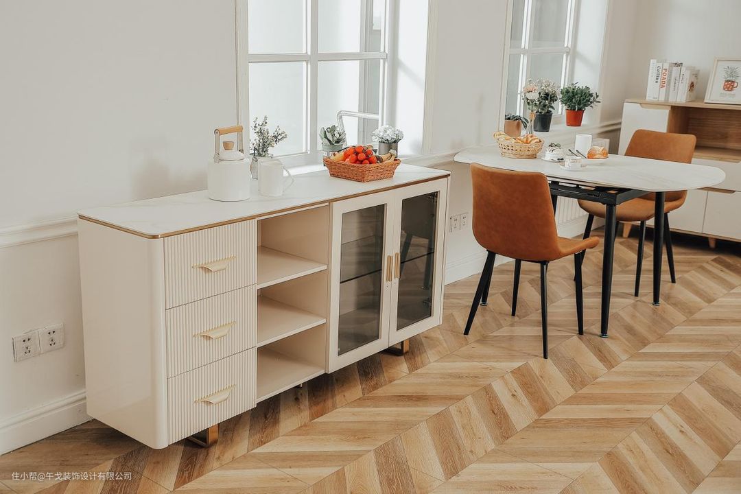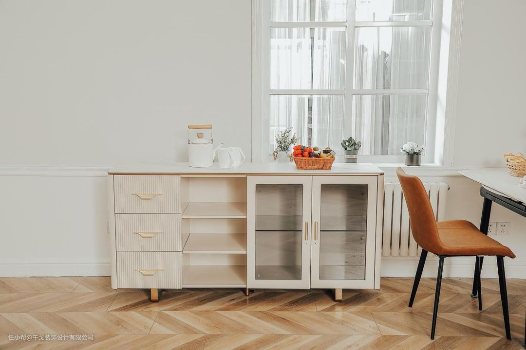 简约式的餐边柜往往线条简单,化繁为简,和餐厅结合起来,成为亮眼的一景。简约式的常用白色调,清新且百搭,不管定制式的整体墙柜、还是矮柜,都可以实用且美观。