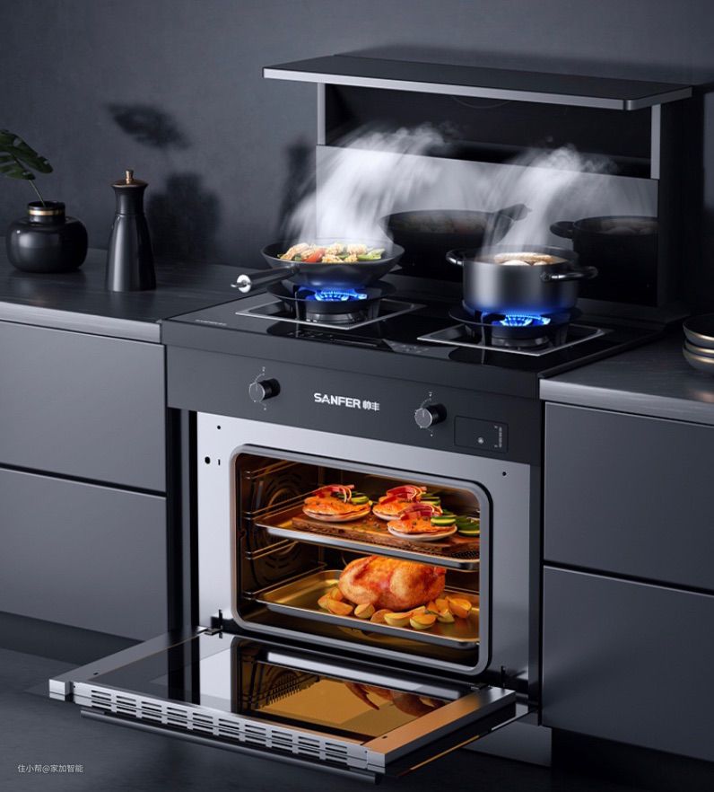 目前一些集成灶产品直接集成消毒柜、蒸烤箱等电器。