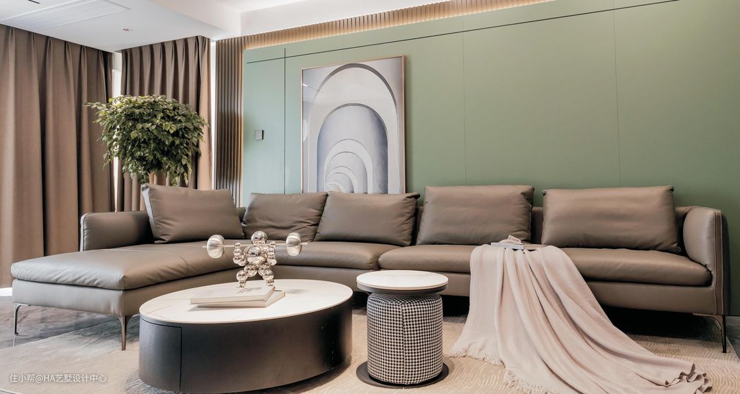 灵动的绿搭配灰色沙发,一眼心动的治愈系装修!