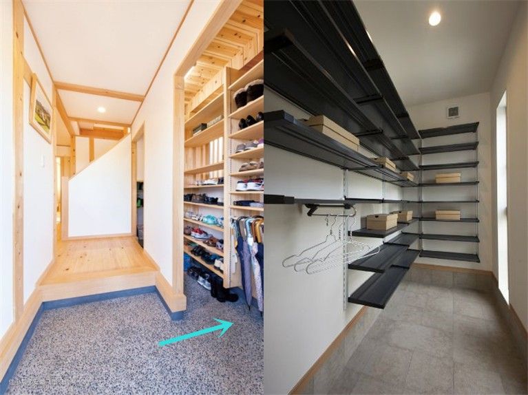 如果玄关区面积比较大,这里做多层U型板,收纳鞋子或杂物,如果玄关区面积小,挤出迷你储物间,可以做L型板,同样实用不占地方。
