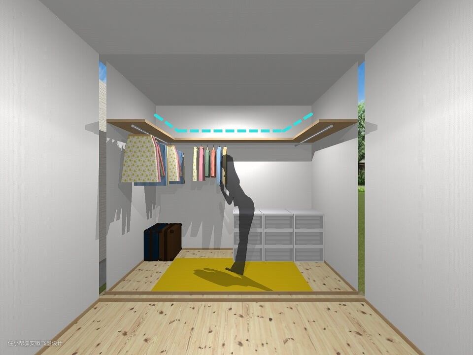 衣帽间里一个柜子都没,围上一圈U型板,不占1㎡,收纳却多出5㎡