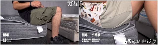 两款床垫的边缘支撑性都不错,不过繁星B的绗缝层更厚,下陷程度稍微多点。