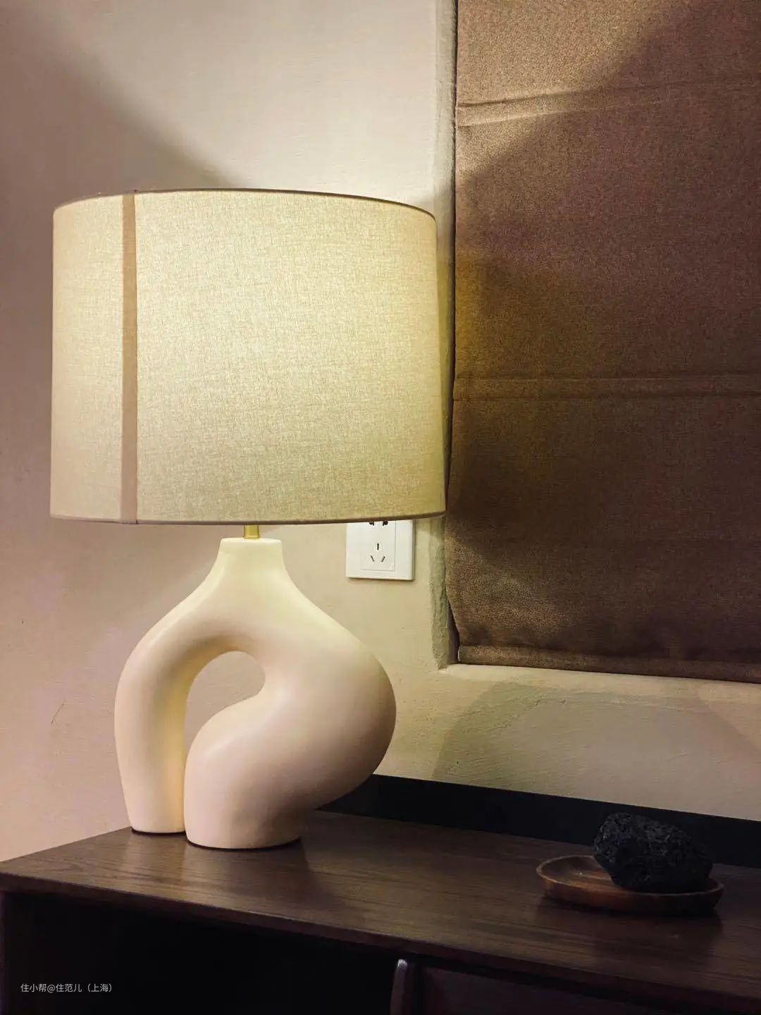 同时在顶部藏一道灯带,边柜上方加一盏台灯作为补充光源,令气氛更加丰富。