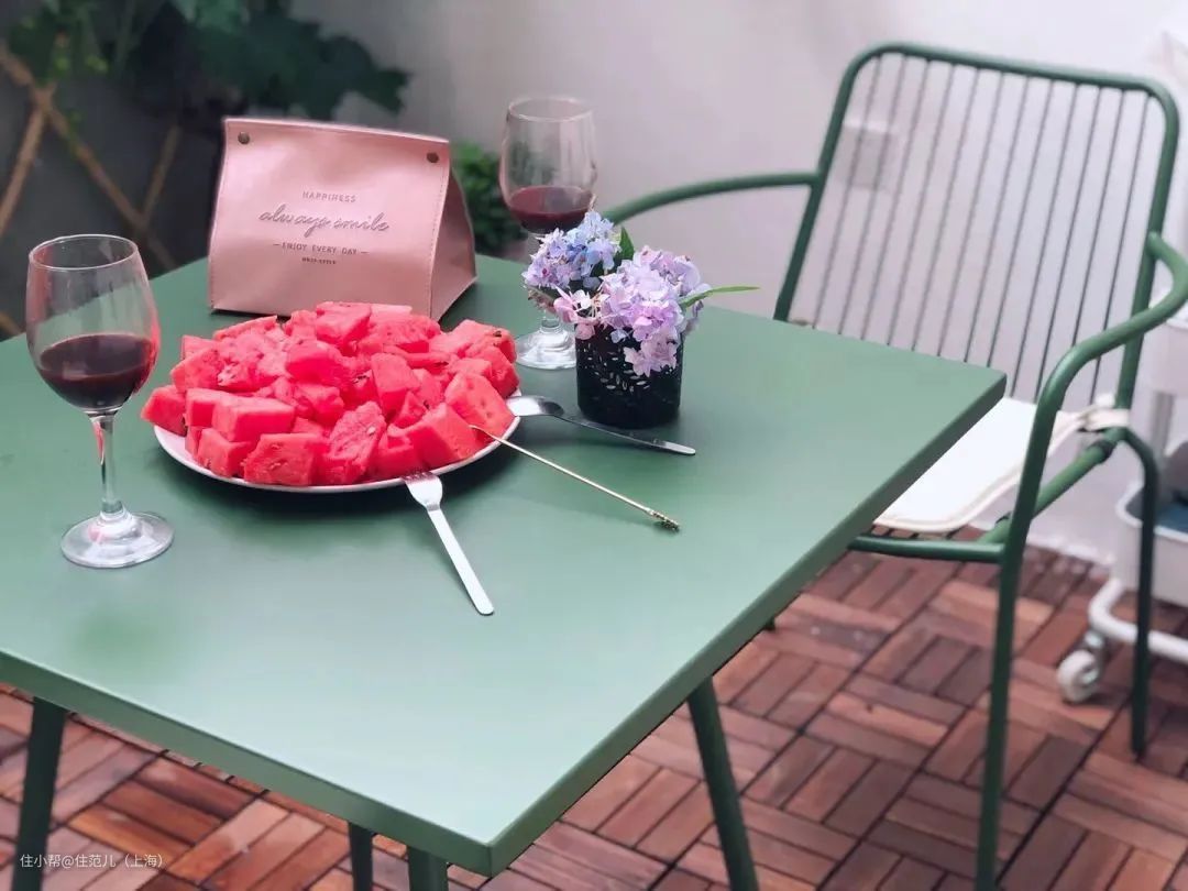 一组户外桌椅和一个躺椅,一个童趣小秋千,夜间打开投影化身小影院,夏天在这里来一场聚会,不能更惬意!