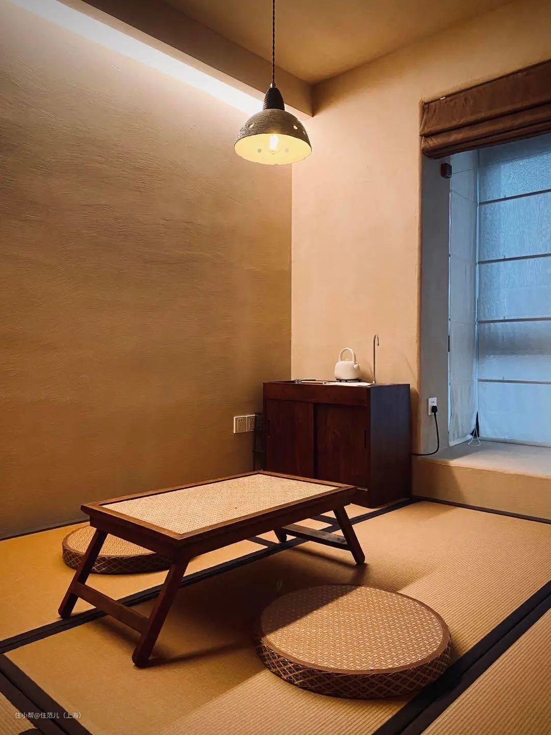 轩铭喜欢喝茶,所以茶室也是精心设计过的区域,局部抬高300mm,做了地台榻榻米,下方储存使用频率不高的物品。