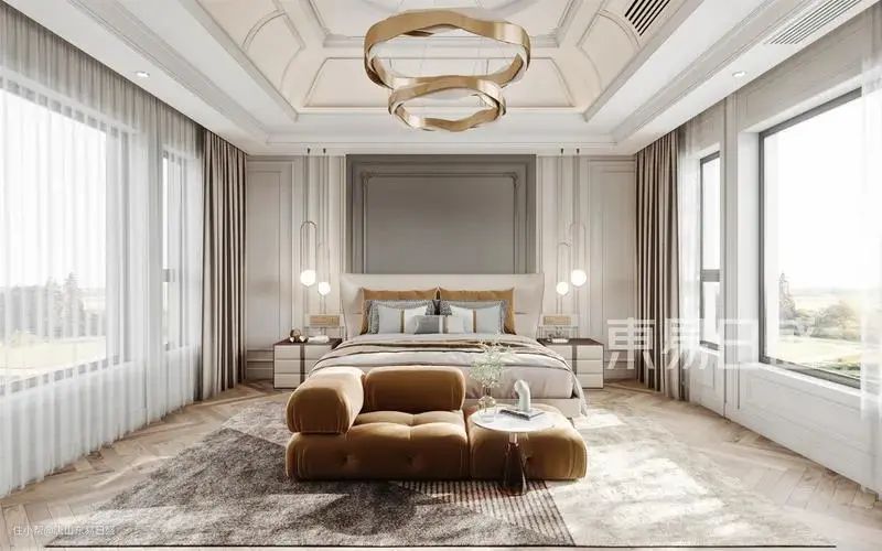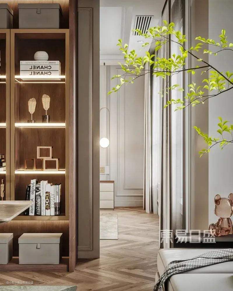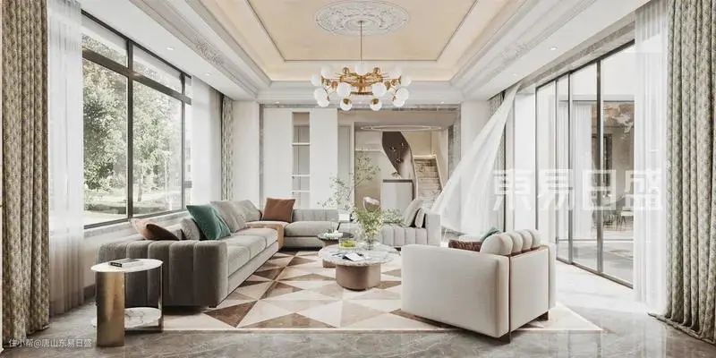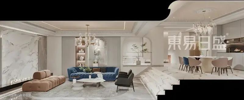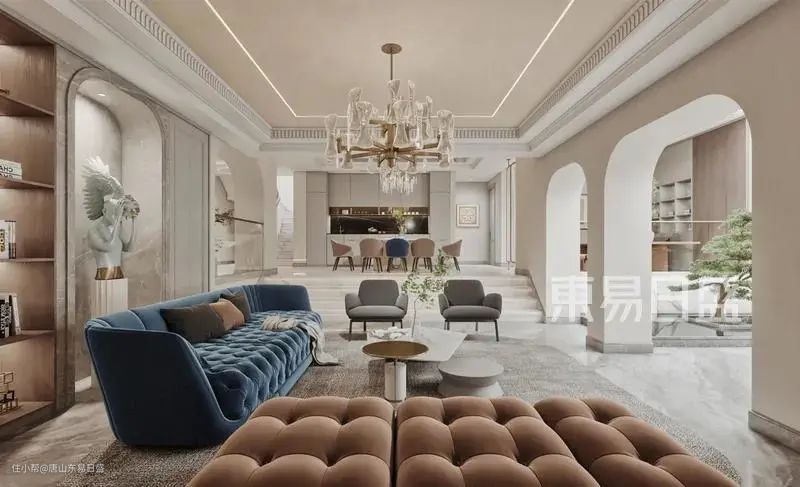 设计思路:法式的浪漫与新古典的雅致在此碰撞交融,摒弃传统的繁华艳丽,清简的色调、流畅的细条,绝佳的采光,让这个房子以优雅的姿态,将归家之人拥入怀抱。