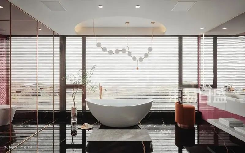 卫生间各有风格,各具特色,但都静谧有序,整体透亮而洁净,光影在彼此间形成隐隐的虚实关系。