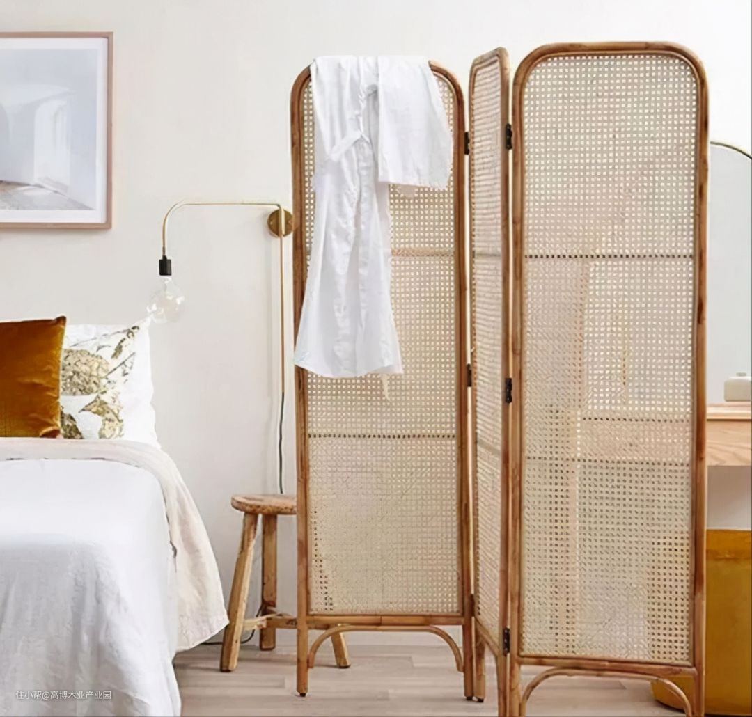 屏风几乎是中国人专属的家具。这自带中式风格的家具,和藤编相结合之后,减轻了中式的厚重古典,增加了轻盈感,即便是放在现代风格中的家也很美。不过屏风对于户型面积还是有一定的要求的。