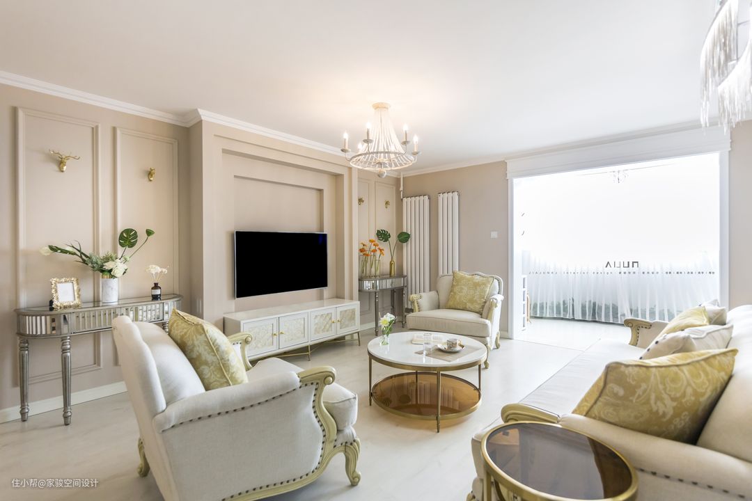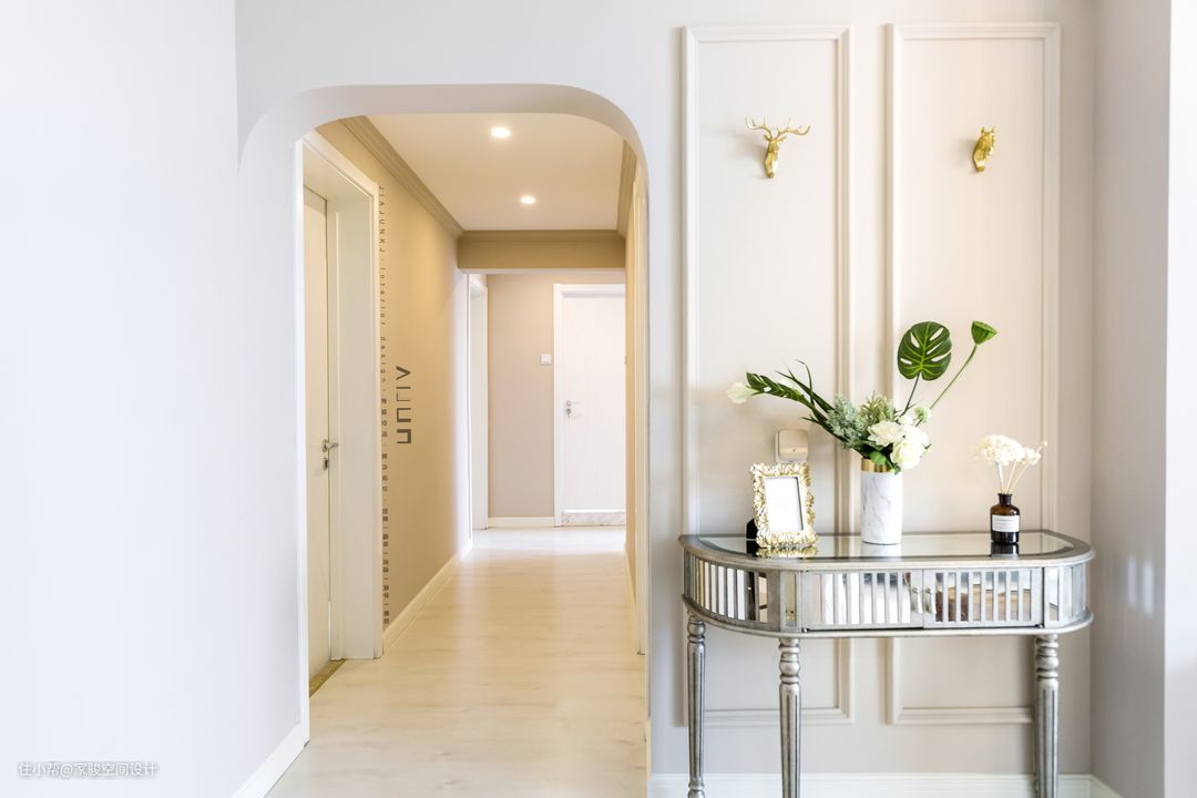 屋主希望房子是素雅的,因此整个房子都是以白色、浅色为主色调设计,另外结合屋主的喜好和她本人的女神气质,设计简约美式风时,也增加了一点点华贵的调性。