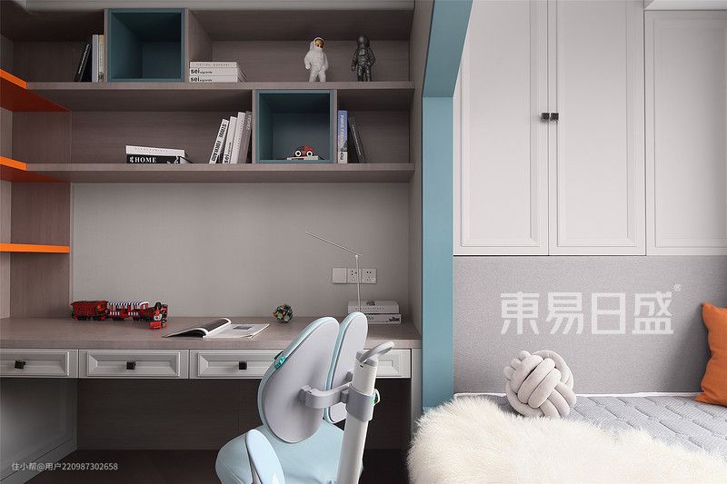 3、男孩房砌T字墙,在靠窗的地方增设学习的区域;