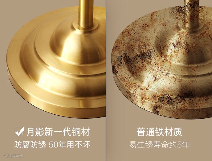 说体验之前,先来介绍一下什么是纯铜灯。目前市面上常见的灯具一般为铁质或镀膜工艺,少数为铜质,因此全铜灯即是由纯铜作为主要材料的灯具产品。从使用上讲,铁质灯具与全铜灯在短期内的确差距不大,但如果你想一步到位,那么全铜灯的这几个优点一定yyds!