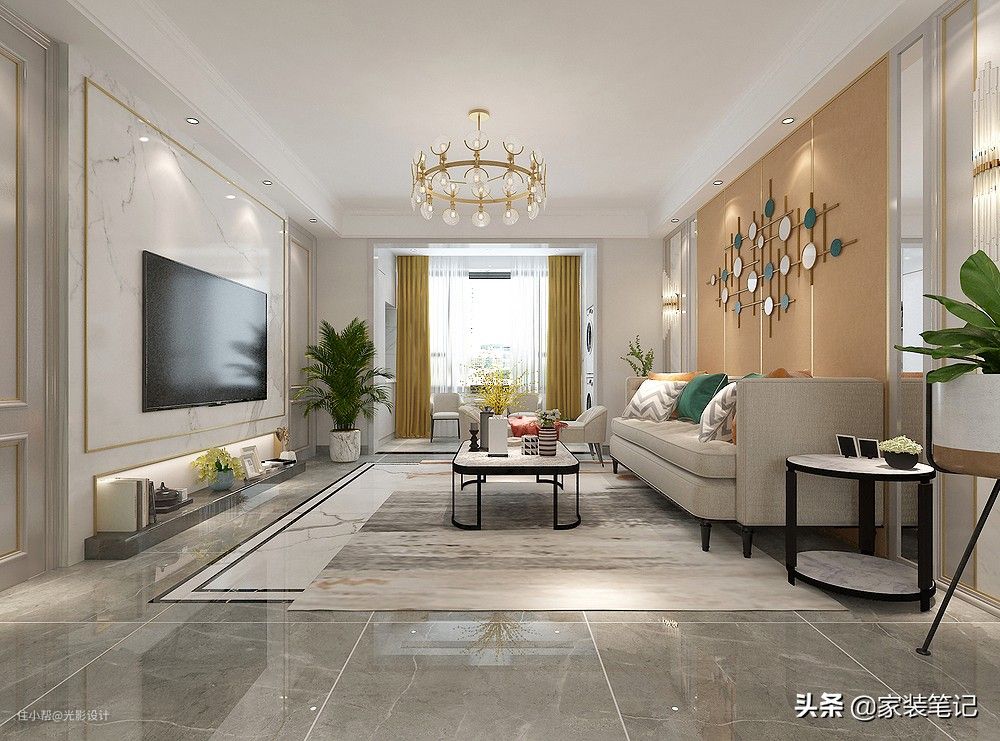轻奢风格的客厅电视墙用大理石岩板是比较多的,因为这样才能够展现出轻奢的质感。本身空间设计就需要回归到生活的本质,要做得更加有生活气息一些,这样才更像家一些。