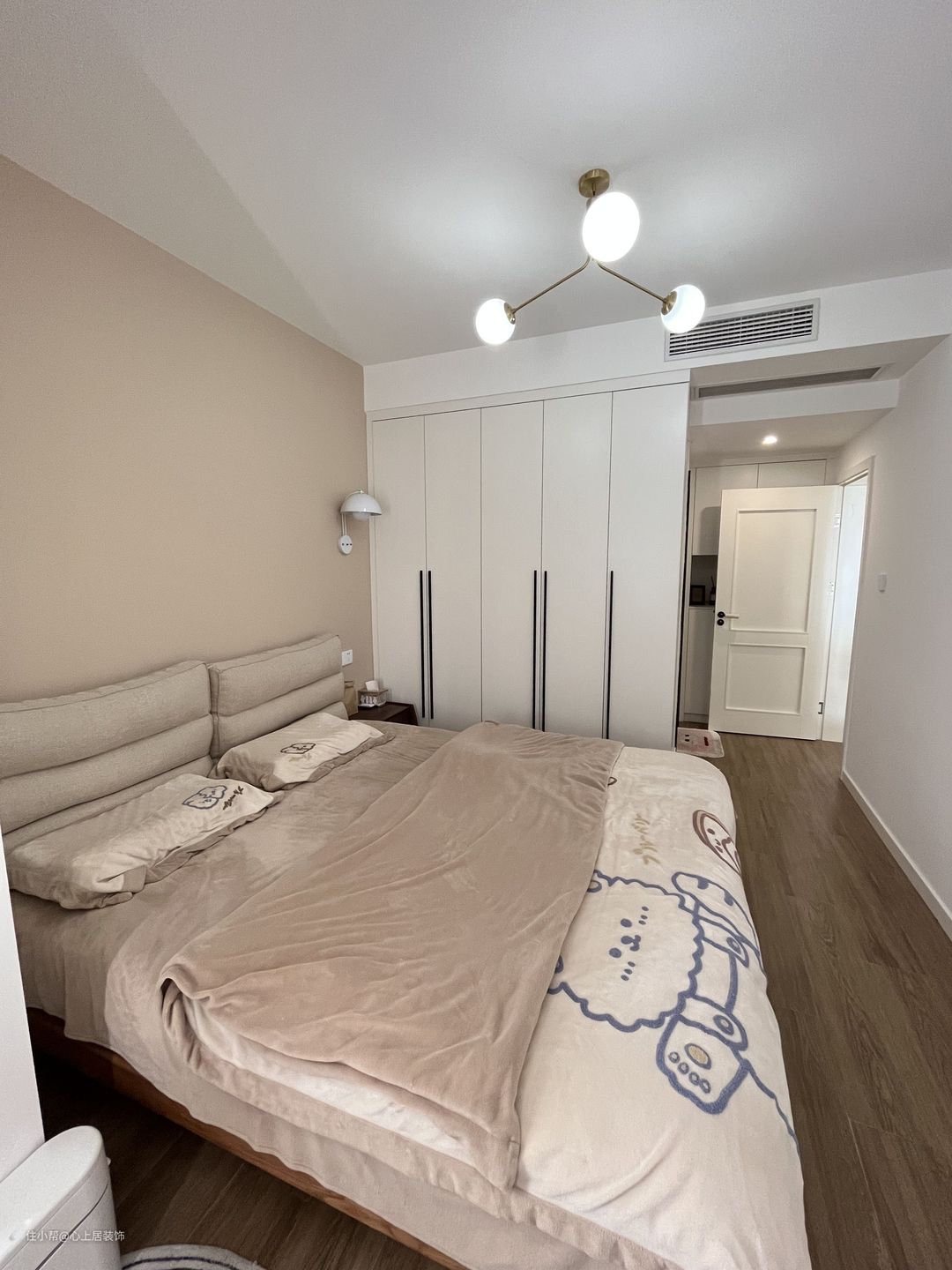 都是全屋定制的,我很喜欢这个小把手,而且柜体做的很符合整体房间的色调,照片看不出来,没加滤镜,实际看很耐看。