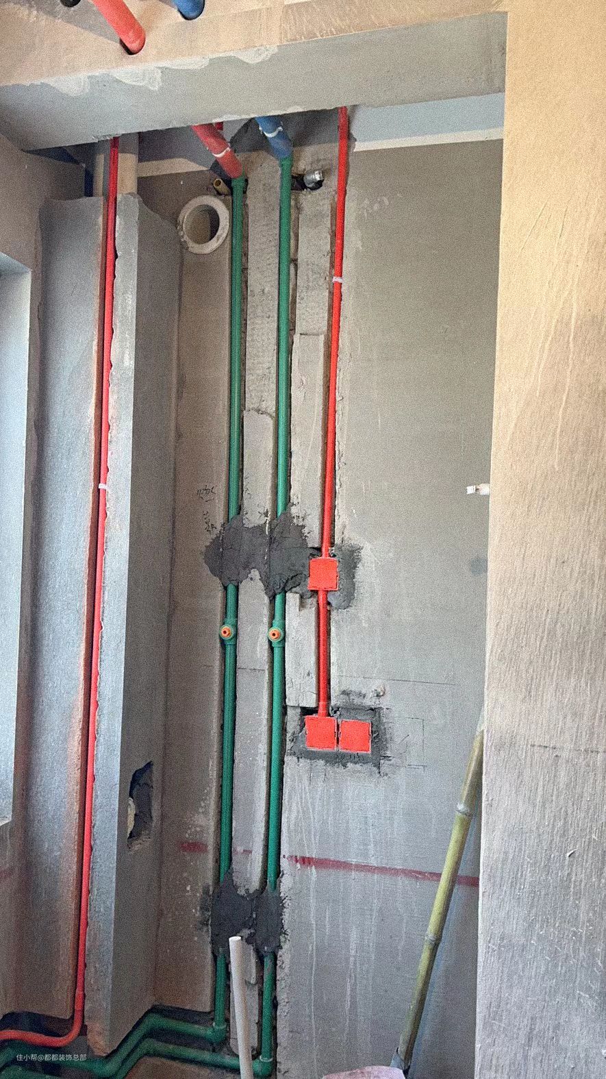 水管排布必须由上而下,尽量避免走横管水电管排线,必须按照“电高水低~的标准排布,加入出现潺水,渗水则可有效避免引发漏电现象