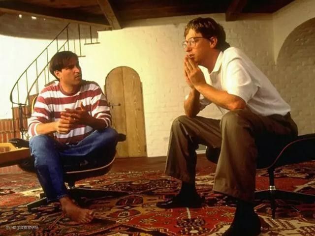 作为曾经的苹果公司 CEO 和微软公司 CEO,乔布斯和比尔盖茨可谓最有资格拥有伊姆斯躺椅的人,毕竟 1W 美元的售价不是每个人都能承担得起。图中乔布斯坐在伊姆斯椅上,而盖茨坐的是伊姆斯的脚踏,当年还是体格壮硕的“小乔”,盖茨也很年轻。