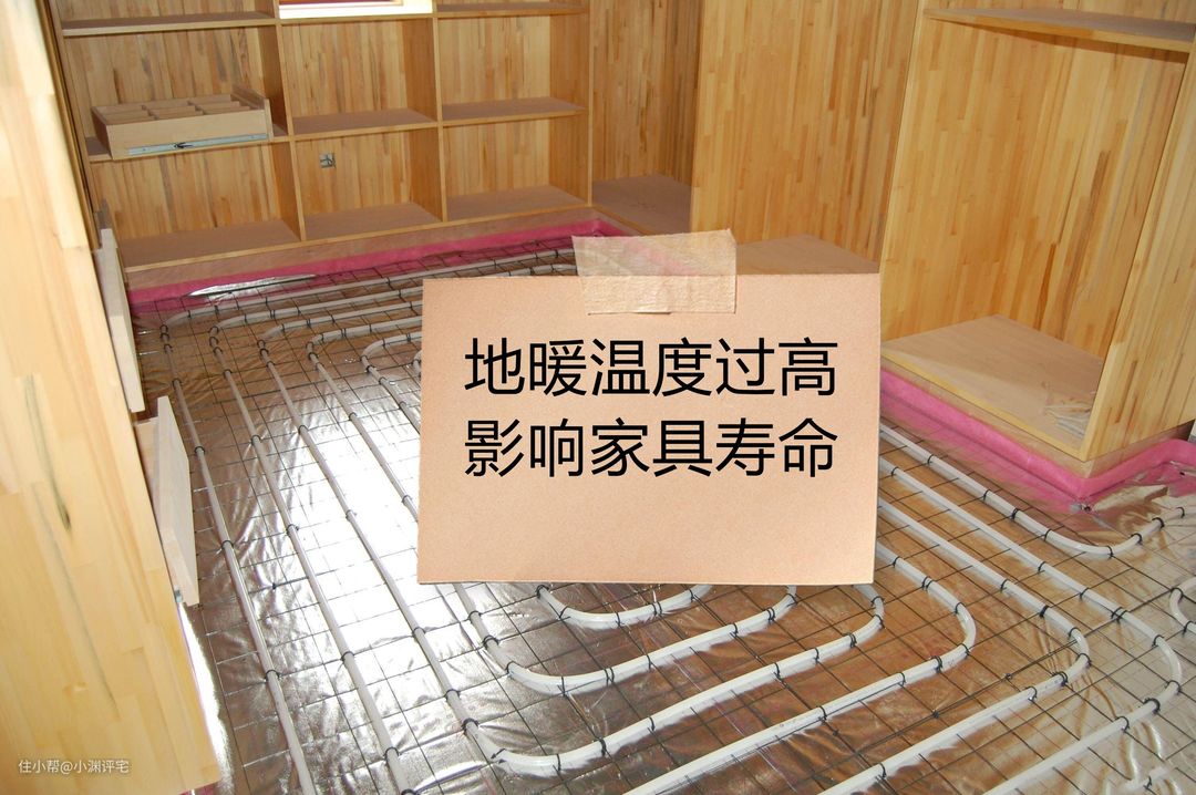 不仅如此,在今年的使用中我还发现了另一个问题:局部温度过高。靠近分水器的地方,地面温度特别高。导致附近的家具、木地板都出现了开裂的情况。