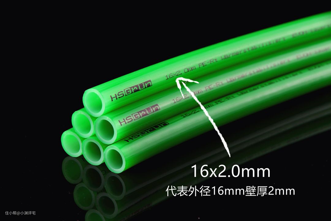 常见地暖管道直径是20mm,如果是暖气片改地暖,则应该选择16mm的地暖管。注意:这里的“直径”,指的都是管道外径。管道的标识含义,可以看下图。