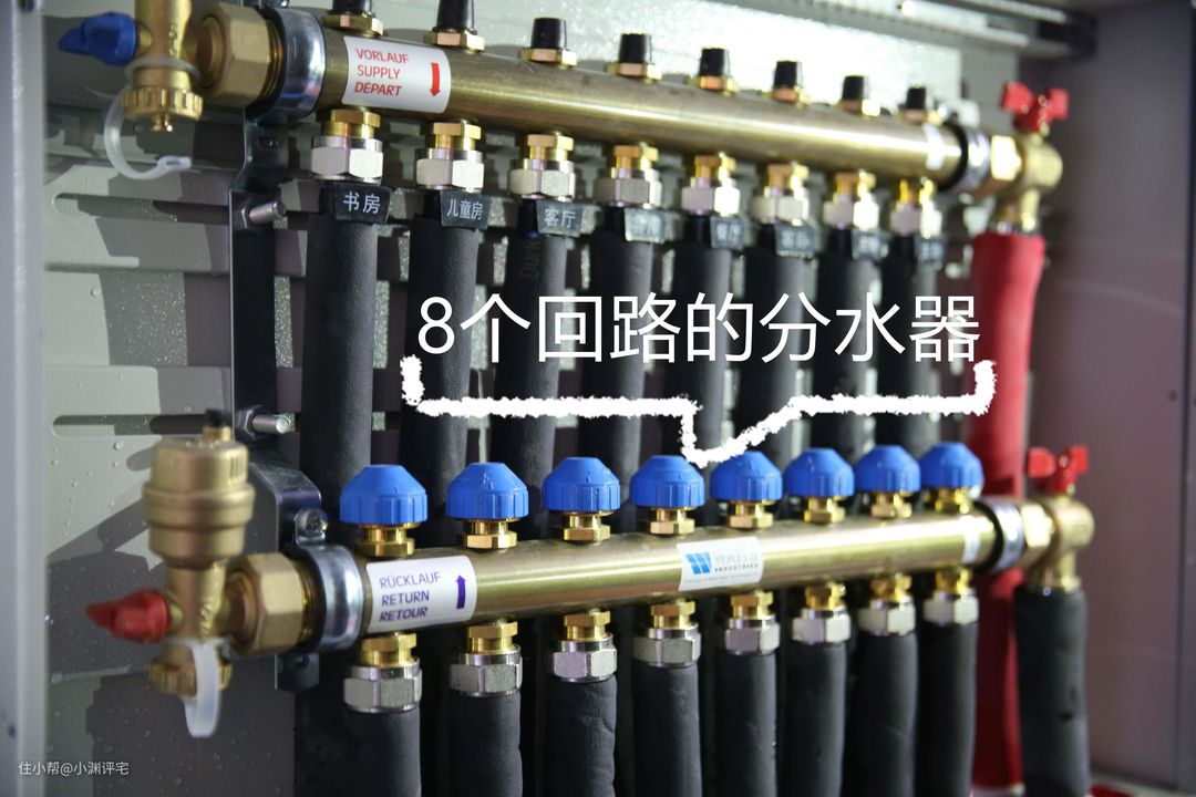 分水器决定了回路的数量,如果是暖气片改地暖,建议比正常铺设地暖多做一两个回路。比如我家是100㎡的户型,正常需要三个回路,暖气片改地暖的话,就需要四个或五个回路。