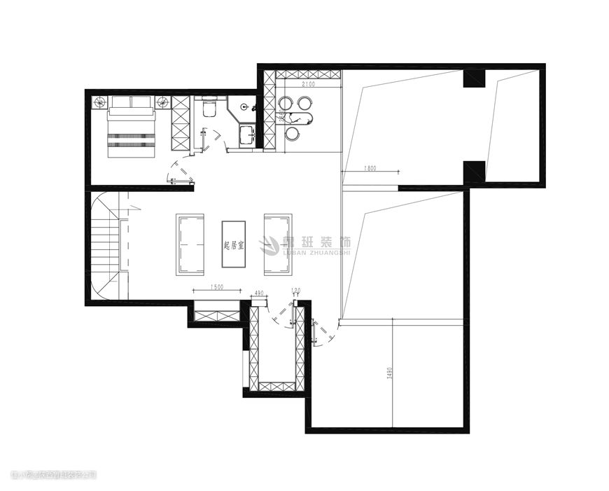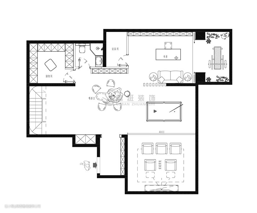 负一层的空间同样开阔,功能上主要规划会客区、吧台区、影音室、品茶区,以及现场浇筑夹层,给业主做了专属的工作室。